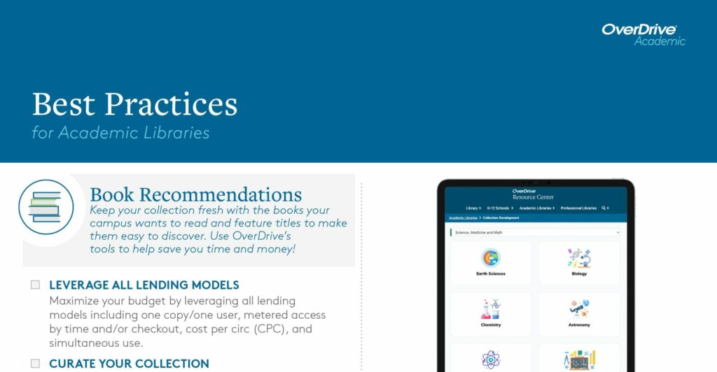 OverDrive’s university & college partners can learn how to increase circulation and promote their digital book collection to students, professors, staff, and their campus community.