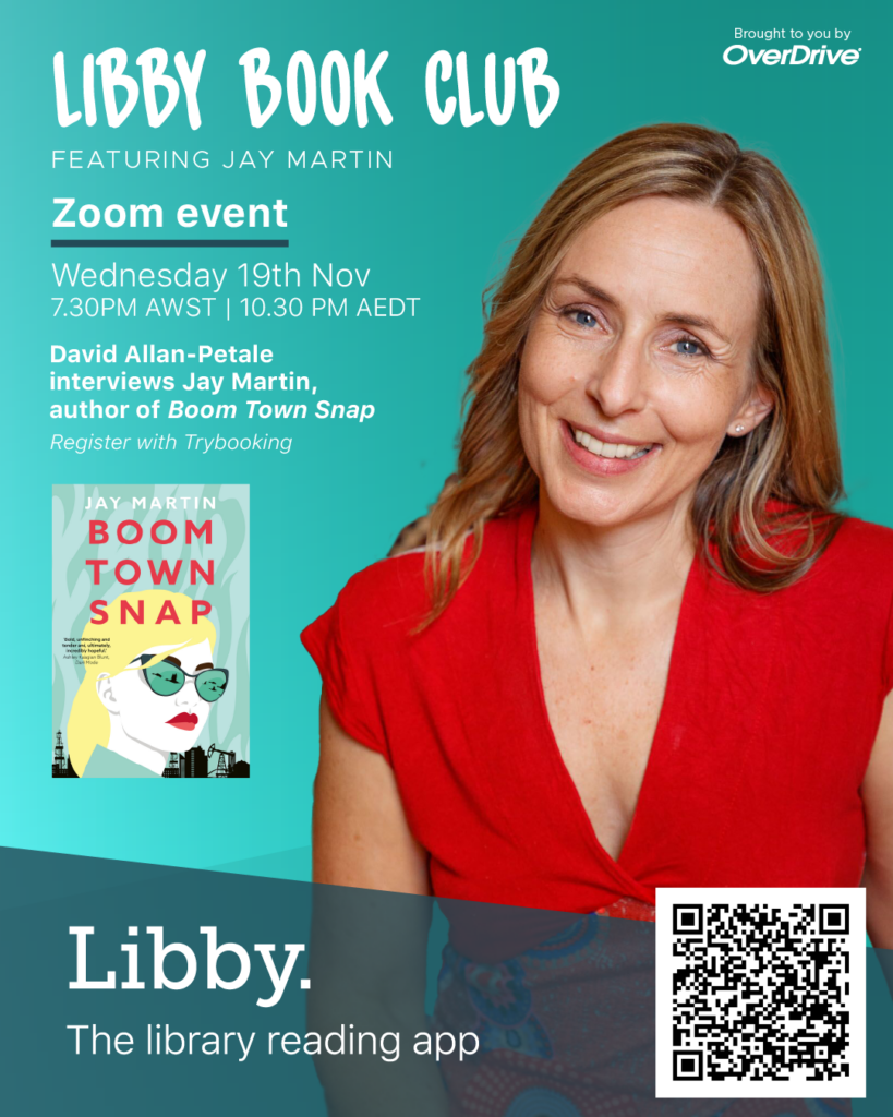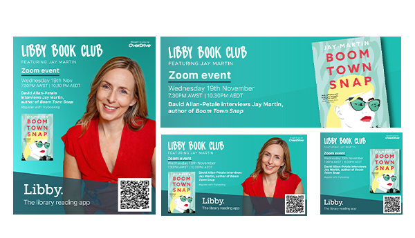 The Libby Book Club is a free monthly digital book club hosted by author David Allan-Petale. We welcome guests to join us the third Wednesday of each month to engage and interact with authors from all genres. November's book club features an interview with Jay Martin, author of Boom Town Snap. Use these assets to promote the book club to your patrons.