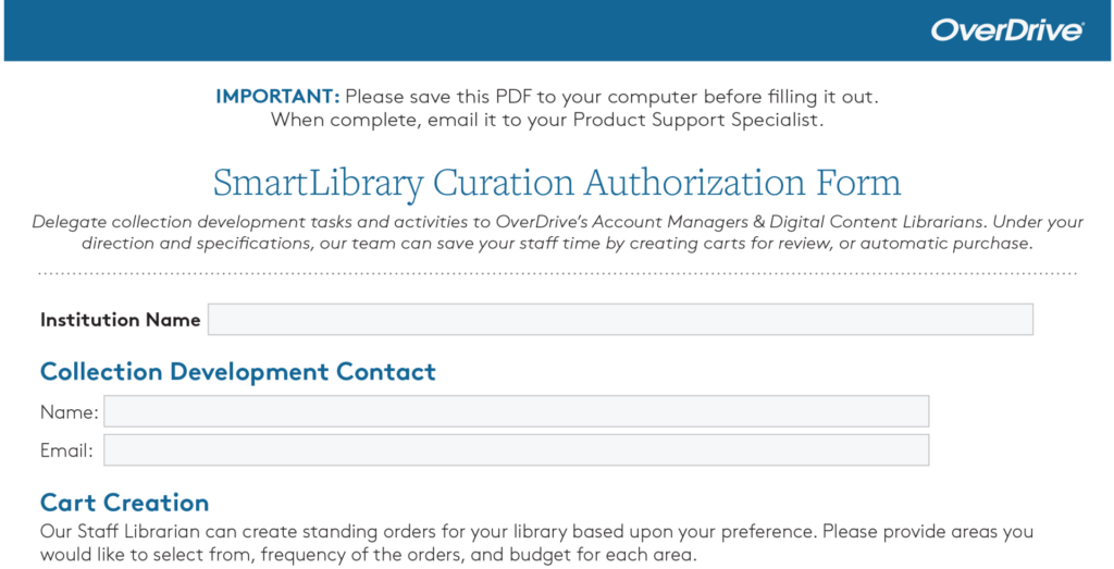 OverDrive Marketplace is the online catalog featuring 4.5 million digital titles from over 30,000 publishers where you can purchase content for your digital collection. If you are new to Marketplace, you can find answers to common questions as well as watch training modules to learn more about purchasing titles, creating carts, curating your collection, reporting tools, and invoicing. If you don’t have a Marketplace username but require one, please contact your OverDrive Marketplace administrator and ask them to create an account for you. Not sure who that is? Contact your OverDrive Team for assistance.